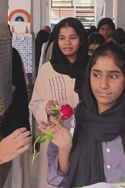 स्वामी विवेकानंद हिंदी इंग्लिश हाई स्कूल एंड जूनियर कॉलेज द्वारा एसएससी परीक्षार्थियों का गुलाब देकर स्वागत