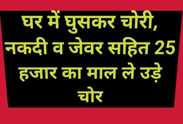 घर में घुसकर चोरी, नकदी व जेवर सहित 25 हजार का माल ले उड़े चोर
