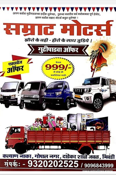 भिवंडी में गुड़ीपाड़वा पर ‘सम्राट मोटर्स’ की विशेष पेशकश, 999 रुपये में कमर्शियल गाड़ी बुकिंग का दावा