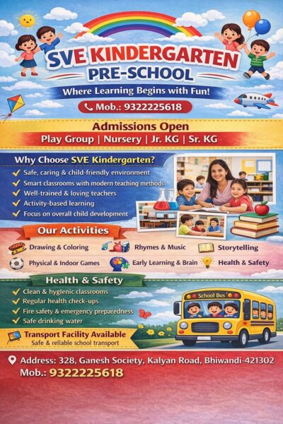 अब्दुल गनी खान भिवंडी। शहर के प्रमुख शैक्षणिक संस्थानों में से एक स्वामी विवेकानंद इंग्लिश हाई स्कूल एंड जूनियर कॉलेज में शैक्षणिक सत्र 2026–2027 के लिए प्रवेश प्रक्रिया शुरू कर दी गई है। स्कूल प्रबंधन ने जानकारी दी कि इस वर्ष नर्सरी से लेकर 10वीं कक्षा तक के साथ-साथ 11वीं और 12वीं (जूनियर कॉलेज) के […]