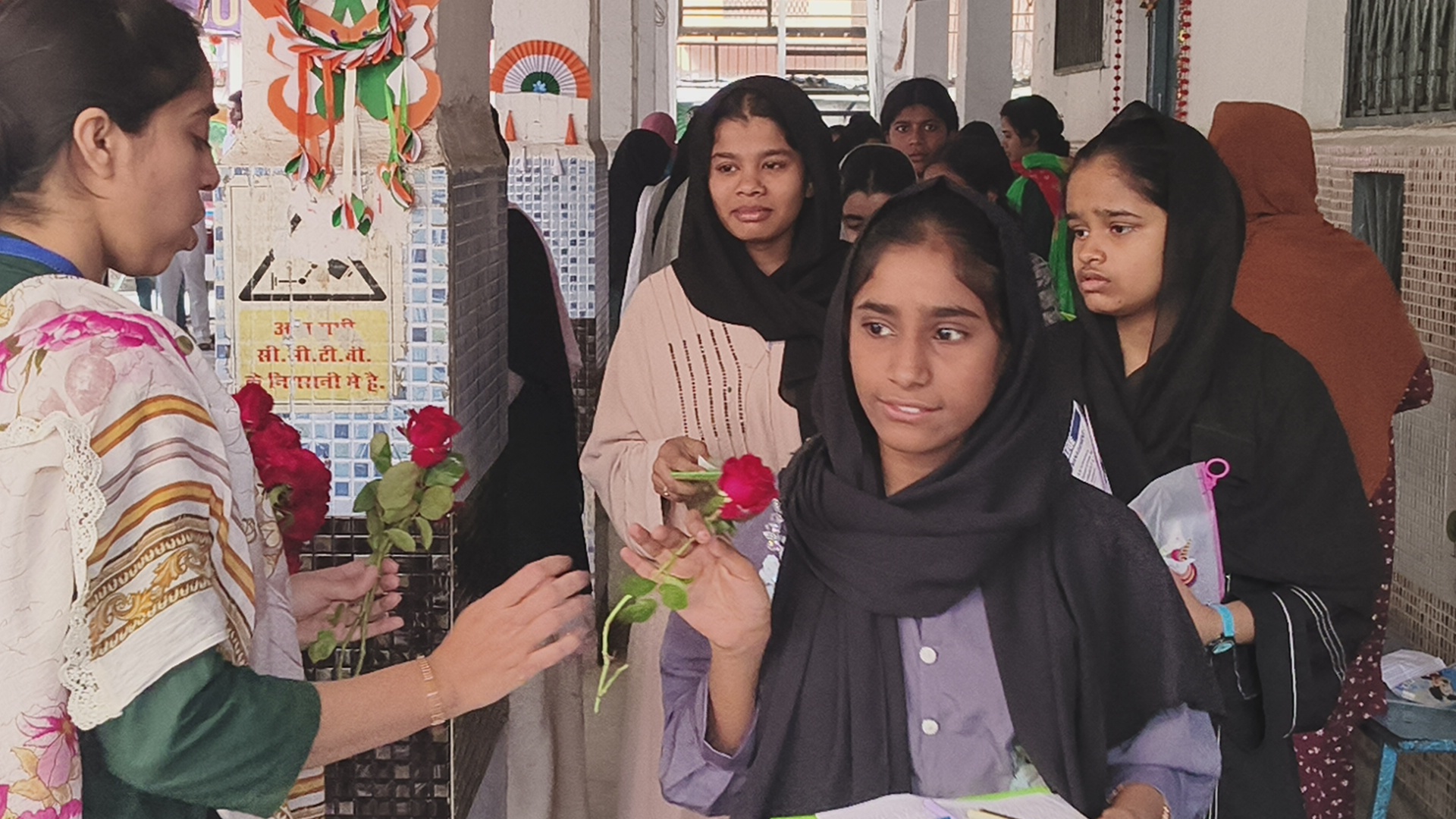 स्वामी विवेकानंद हिंदी इंग्लिश हाई स्कूल एंड जूनियर कॉलेज द्वारा एसएससी परीक्षार्थियों का गुलाब देकर स्वागत