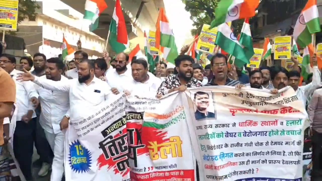 सड़क चौड़ीकरण के विरोध में भिवंडी कांग्रेस का मनपा मुख्यालय के सामने धरना