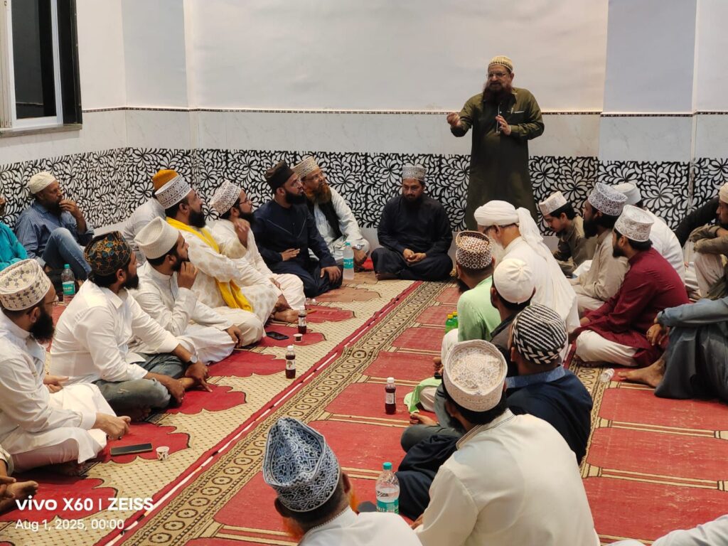 यह बैठक रज़ा अकैडमी के संस्थापक असीर-ए-मुफ्ती-ए-आज़म अलहाज मोहम्मद सईद नूरी साहब क़िबला की विशेष दुआओं से सम्पन्न हुई। इसकी अध्यक्षता क़ाज़ी-ए-शहर भिवंडी मुफ्ती मुबश्शिर रज़ा साहब (नूरी दारुल इफ्ता, कोटरगेट) ने की।