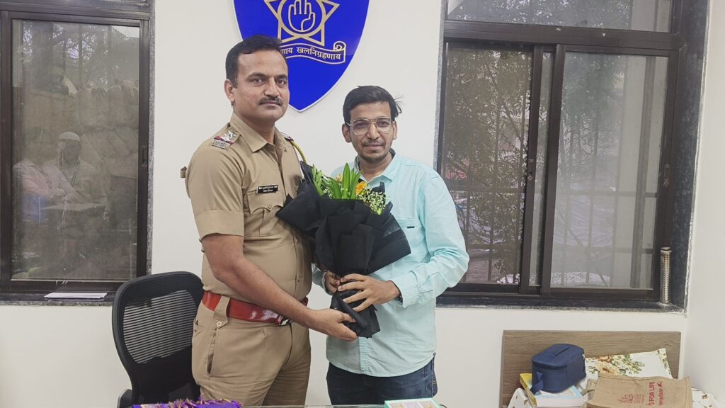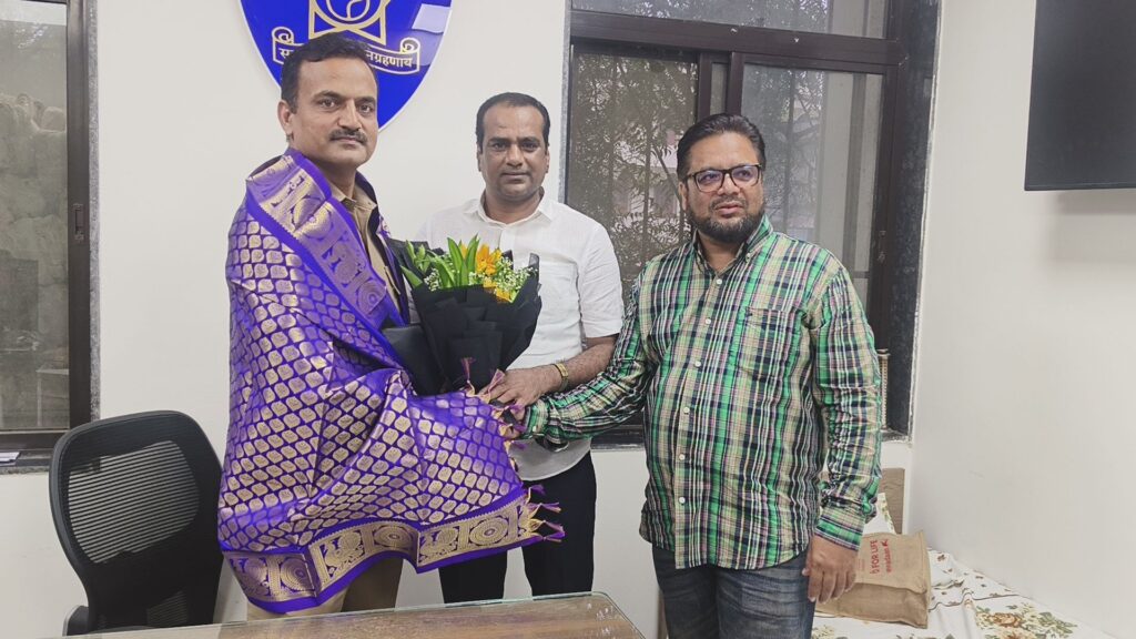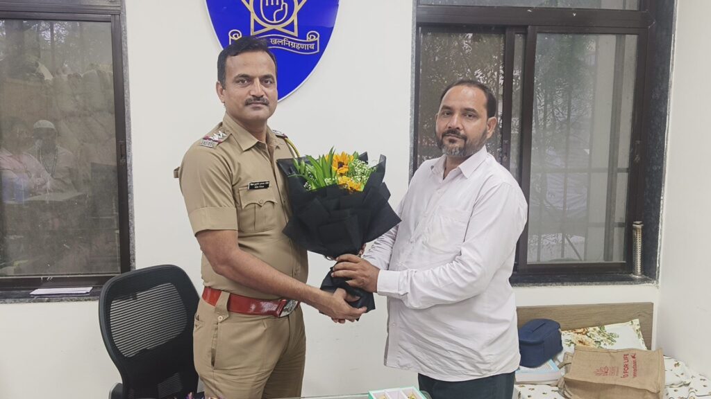 भिवंडी। भिवंडी शहर पुलिस स्टेशन में हाल ही में नियुक्त किए गए तेज़तर्रार पुलिस इंस्पेक्टर विक्रम मोहते का समाज सेवक इरफान हदीश अंसारी द्वारा पुष्पगुच्छ भेंट कर भव्य स्वागत किया गया। इस अवसर पर स्थानीय नागरिकों और समाजसेवियों ने भी इंस्पेक्टर मोहते के स्वागत में अपनी उपस्थिति दर्ज कराई।