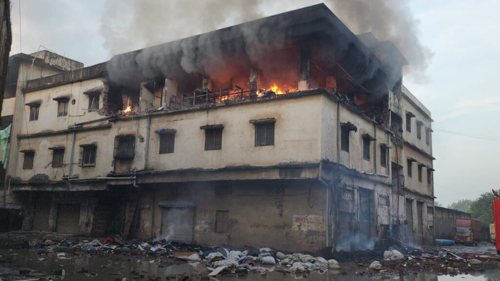भिवंडी के राहनाल ग्राम पंचायत क्षेत्र के मुनीसुरत कंपाउंड के महादेव मढवी कॉम्प्लेक्स में स्थित महावीर सिंथेटिक कंपनी का गोदाम इमारत की दूसरी मंजिल पर भीषण आग लग गई। बताया गया है कि यहां रात को लक्ष्मी पूजन के बाद दीये जलाए गए थे। दूसरी मंजिल पर कंपनी का कार्यालय और गोदाम था, जिसमें कपड़ा रखा हुआ था। रात में इस गोदाम में आग लगी और अंदर ही अंदर भड़कती रही, जिसके कारण वहां रखे सिलेंडर में विस्फोट हो गया और गोदाम की दीवारें ढह गईं। घटना की सूचना भिवंडी अग्निशमन दल को तड़के साढ़े चार बजे मिलते ही, उनकी दो गाड़ियां मौके पर पहुंचीं और अथक प्रयास करके छह घंटे बाद आग पर काबू पाया।