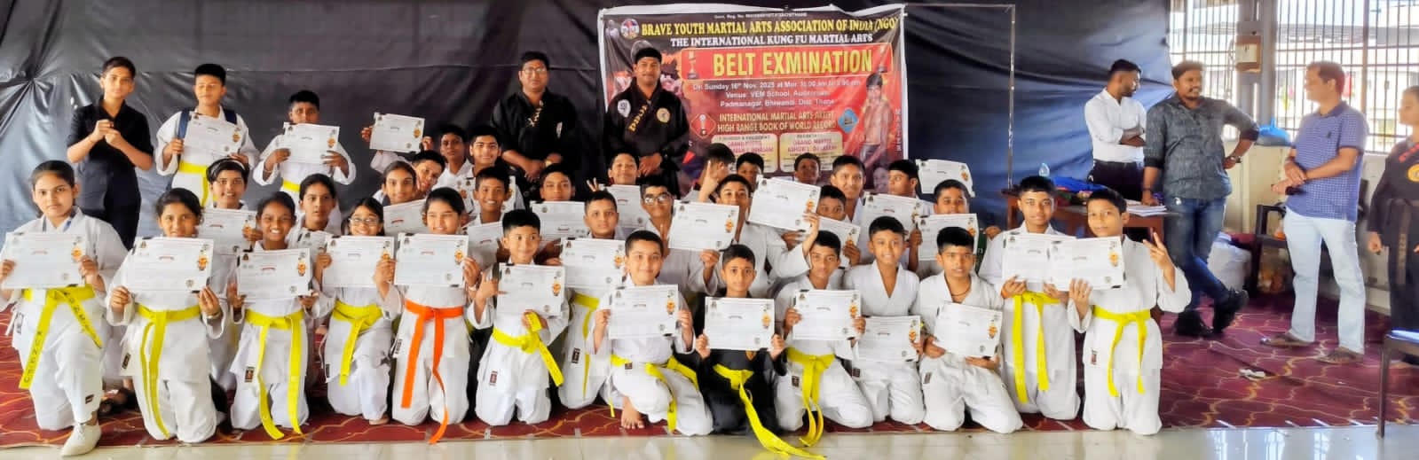 जिसमे मुख्य परीक्षक की भूमिका में नंदी पुरस्कार से सम्मानित 5वीं डिग्री ब्लैक बेल्ट होल्डर ग्रैंड मास्टर अशोक एल. देवासानी , बीवाईएमए के असिस्टेंट चीफ इंचार्ज मिथुन सी एच भोई , मैनेजिंग डायरेक्टर भरत एल देवासानी , असिस्टेंट इंस्पेक्टर मयूरी सोदे , आनंद सोनी , करण जैसवार , अरमान सिरोहा , आदित्य बाजपेयी , मोनिका एगा , प्रेरणा , वैभवी , कामाक्षी आदि का विशेष योगदान रहा है । उक्त अवसर पर हाई रेंज बुक आफ वर्ल्ड रिकार्ड होल्डर राजाराम देवासानी ने कहा कि आज मार्शल आर्ट और सेल्फ डिफेंस अति आवश्यक है विशेष रुप से लड़कियों के लिये जिसके लिये सभी स्कूलों में सप्ताह में एक सेल्फ डिफेंस लेक्चर का होना आवश्यक है ।