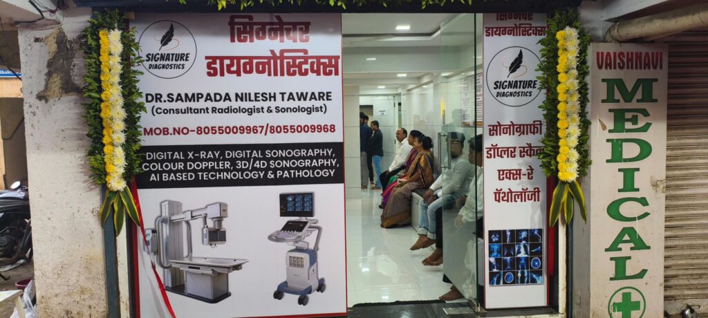भिवंडी शहर में अत्याधुनिक चिकित्सा सुविधाओं को एक और मजबूती देते हुए ‘सिग्नेचर डायग्नोस्टिक्स’ का शुभारंभ किया गया। डॉ. संपदा निलेश टावरे (कंसल्टेंट रेडियोलॉजिस्ट एवं सोनोलॉजिस्ट) द्वारा संचालित इस सेंटर में नवीनतम डिजिटल एक्स-रे, डिजिटल सोनोग्राफी, कलर डॉप्लर, 3D/4D सोनोग्राफी एवं एआई आधारित पैथोलॉजी जांच की सुविधा उपलब्ध कराई गई है।