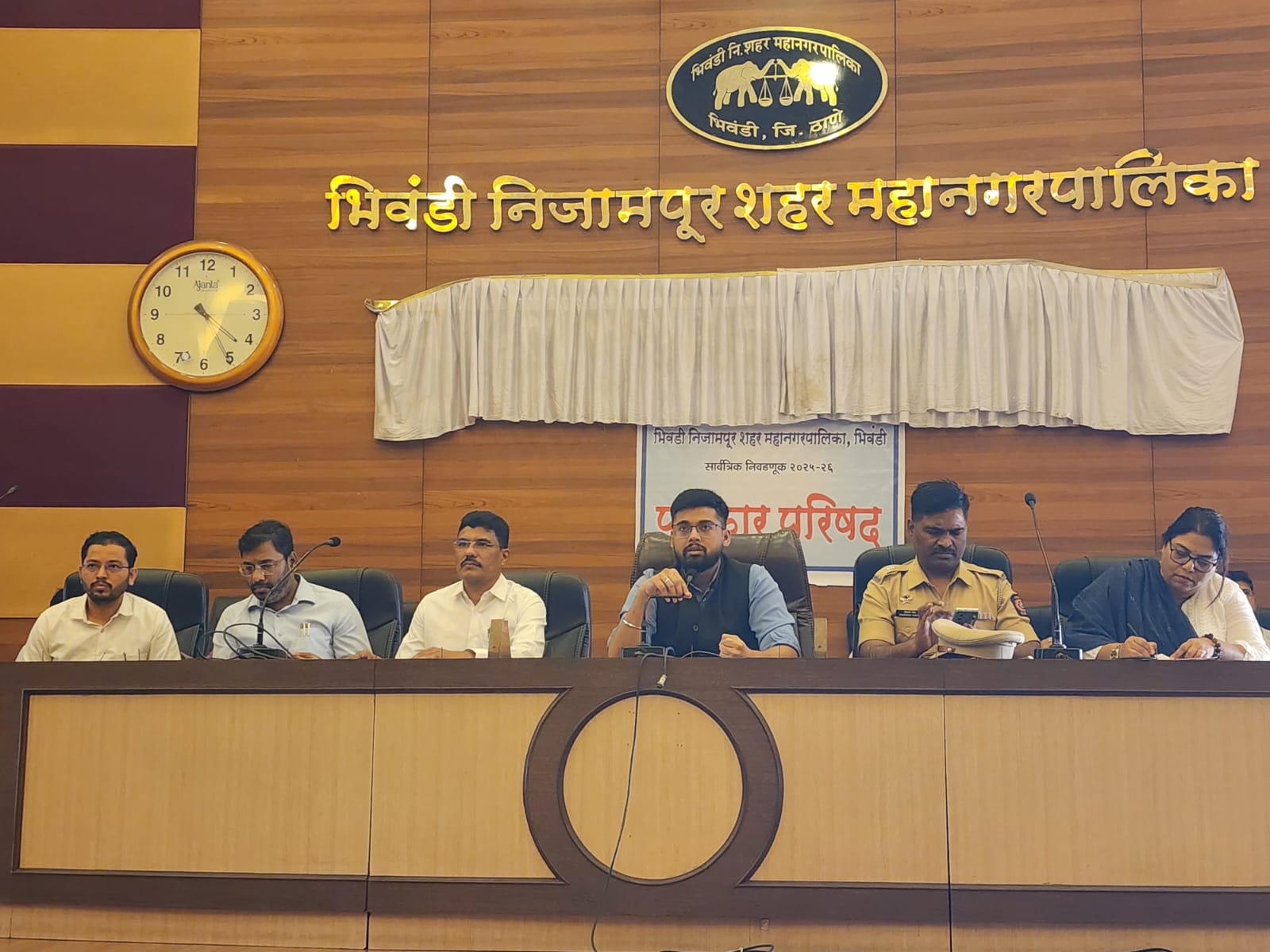 भिवंडी निजामपुर महानगरपालिका के आगामी आम चुनाव को लेकर मनपा आयुक्त एवं मुख्य निर्वाचन अधिकारी अनमोल सागर की अध्यक्षता में संबंधित सभी विभागों के अधिकारियों की महत्वपूर्ण बैठक संपन्न हुई। इसके बाद आयोजित प्रेस कॉन्फ्रेंस में आयुक्त अनमोल सागर ने स्पष्ट किया कि भिवंडी मनपा चुनाव शांतिपूर्ण, निष्पक्ष और भयमुक्त वातावरण में संपन्न कराने के लिए पूरा चुनाव तंत्र तैयार है।