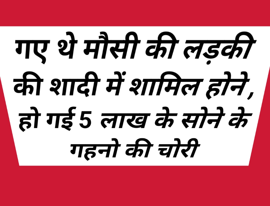 मौसी के लड़की के शादी समारोह में शामिल होने व्यक्ति के बैग से 5 लाख के गहनों की चोरी हो गई।इस मामले में विवाह में शामिल होने आई एक महिला और उसके लड़के पर चोरी का केस दर्ज कराया गया है। आरोप है कि एक महिला और उसके बेटे ने आपस में मिलकर बैग में रखे सोने के गहने चुरा लिया है।