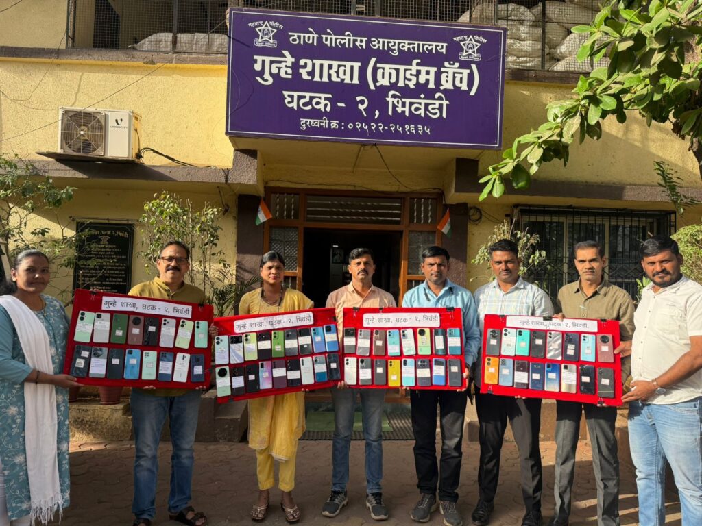 भिवंडी: क्राईम ब्रांच जोन-2 पुलिस ने गुम और चोरी हुए मोबाइल फोन की बरामदगी में बड़ी सफलता हासिल की है। पुलिस ने CEIR (सेंट्रल इक्विपमेंट आइडेंटिटी रजिस्टर) पोर्टल की मदद से अलग-अलग थाना क्षेत्रों से 70 गुम मोबाइल फोन बरामद किए हैं। बरामद मोबाइलों की कुल अनुमानित कीमत 15 लाख 68 हजार 800 रुपये बताई गई है। इस कार्रवाई ने एक बार फिर मोबाइल चोरी और गुमशुदगी के मामलों में पुलिस की सक्रियता को उजागर किया है।