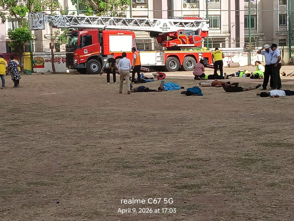 यह मॉक ड्रिल नागरिक सुरक्षा संगठन के निर्देश पर उपनियंत्रक विजय जाधव के नेतृत्व में आयोजित हुई। अभ्यास के दौरान फायर ब्रिगेड, पुलिस, होमगार्ड, TDRF, आपदा प्रबंधन टीम और स्वास्थ्य विभाग सहित कई एजेंसियों ने हिस्सा लिया और रेस्क्यू ऑपरेशन, प्राथमिक उपचार तथा आग बुझाने की प्रक्रिया का प्रदर्शन किया।