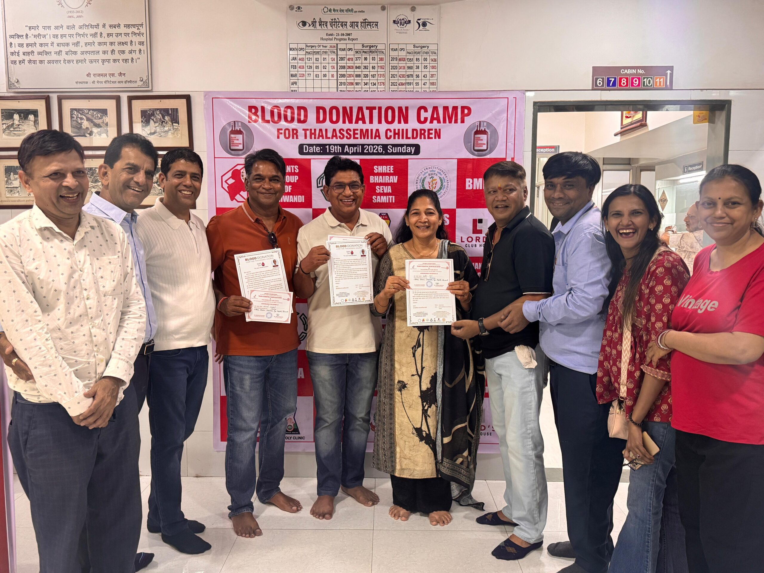 भिवंडी: थैलेसीमिया से जूझ रहे बच्चों के लिए उम्मीद की नई किरण बनते हुए शहर में एक भव्य सामूहिक रक्तदान शिविर का आयोजन किया गया। जॉयट्स ग्रुप ऑफ भिवंडी, श्री भैरव चैरिटेबल ट्रस्ट, एसपीएस चैरिटेबल ट्रस्ट, बीएमपीए, आईएमए भिवंडी और लौर्ड्स क्लब हाउस के संयुक्त प्रयास से आयोजित इस शिविर में 150 यूनिट रक्त एकत्रित किया गया।