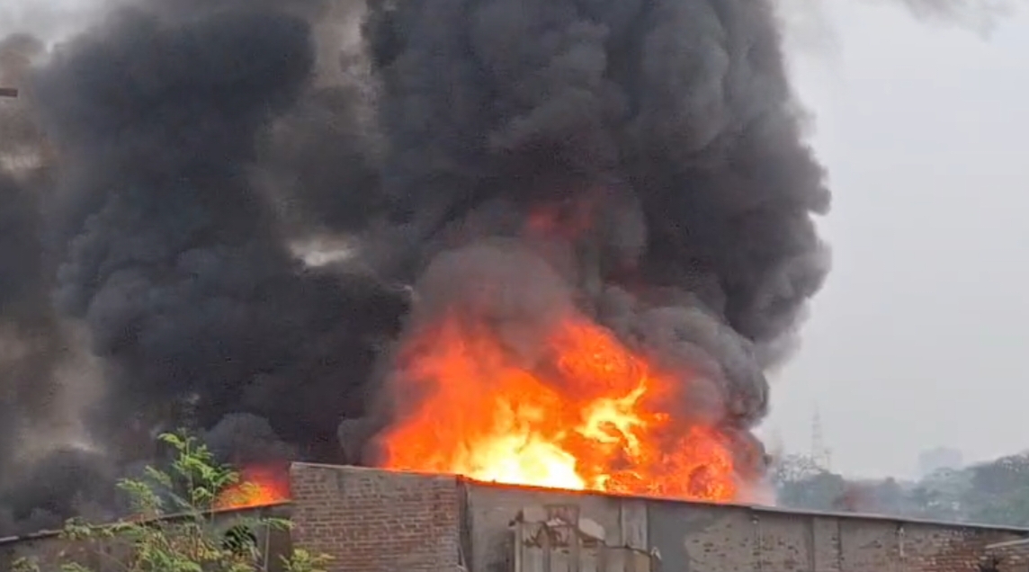 खाड़ीपार इलाके में मूलचंद कंपाउंड स्थित गोदाम आग की चपेट में, धुएं के गुबार से इलाके में अफरा-तफरी